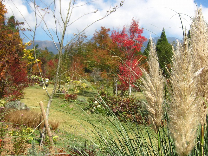 癒しの森ではパンパスグラスや広葉樹が
