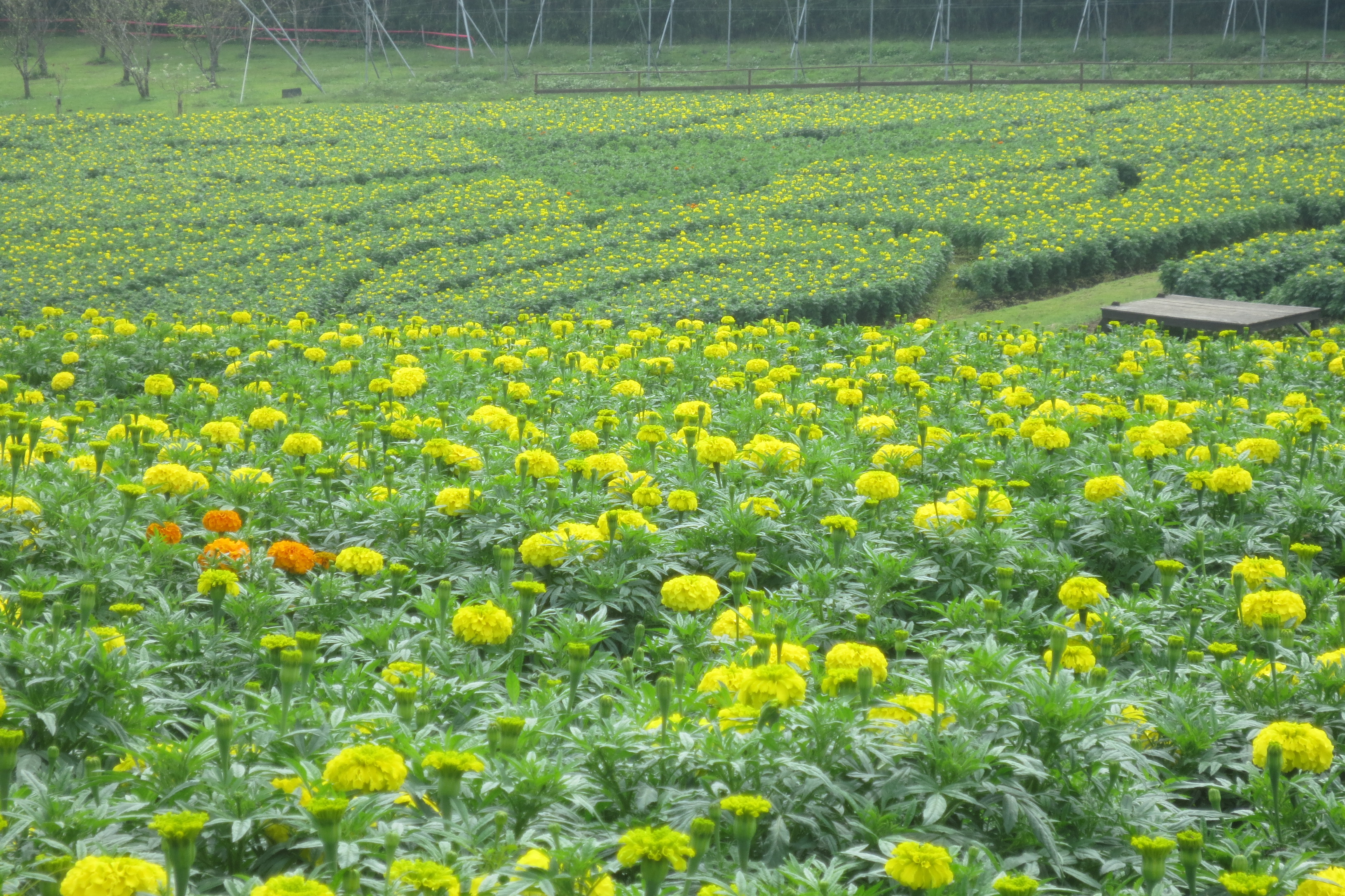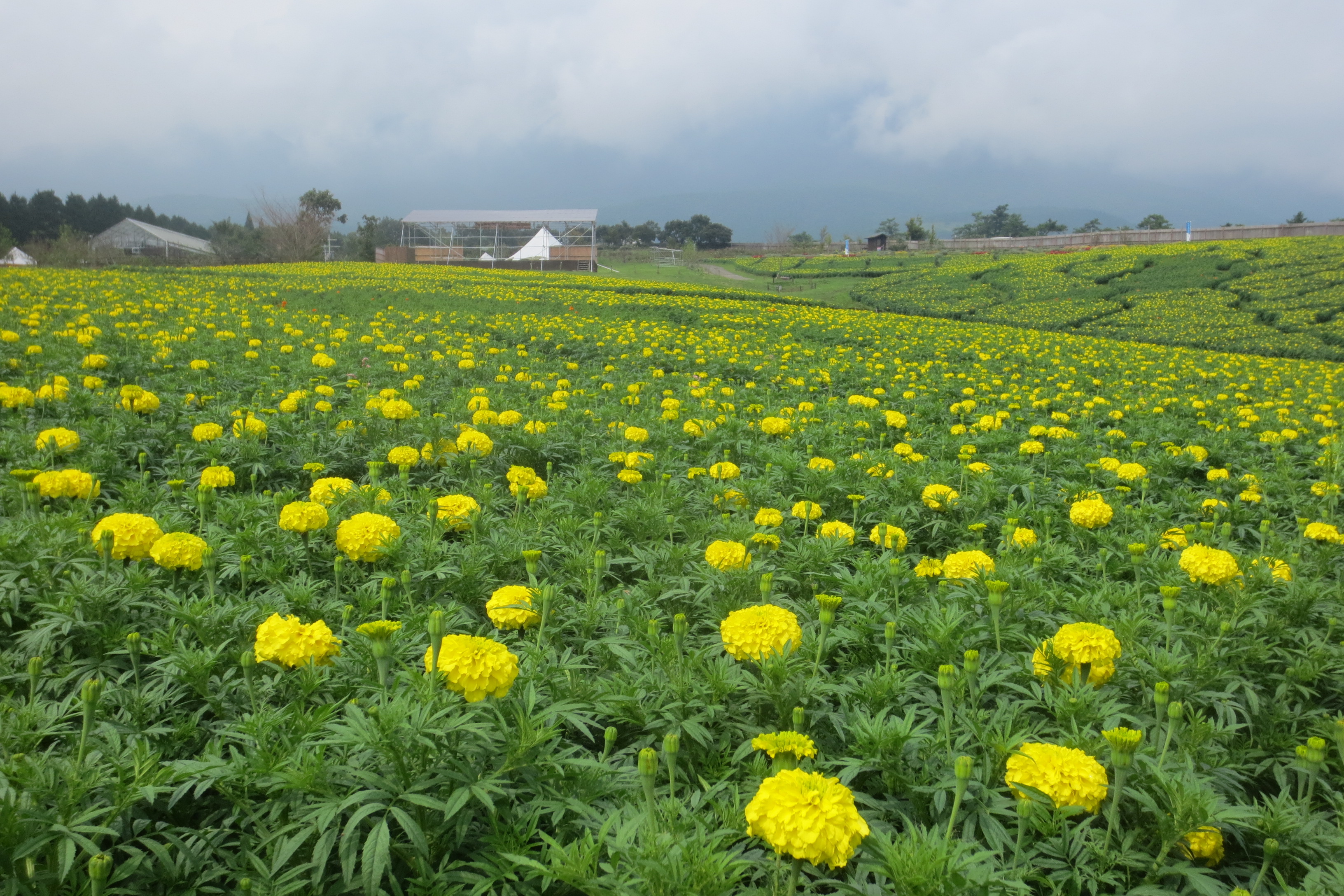 ・ この秋楽しみなのが、このマリーゴールド畑。 その名もアフリカンマリーゴールド、お花がまんまると大きいのが特徴です。 まもなく、見頃を迎えそうです。 ・ ハロウィンをテーマに星や月をデザインしていますが、 あと少しで、デザインも顔を出してくれそうですね ♫ ↓ ↓