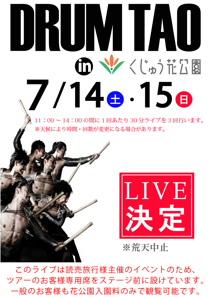 DRUM TAO in くじゅう花公園 ライブ決定!!