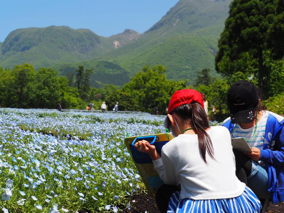 1年生~5年生35名の生徒さんがくじゅう花公園に、