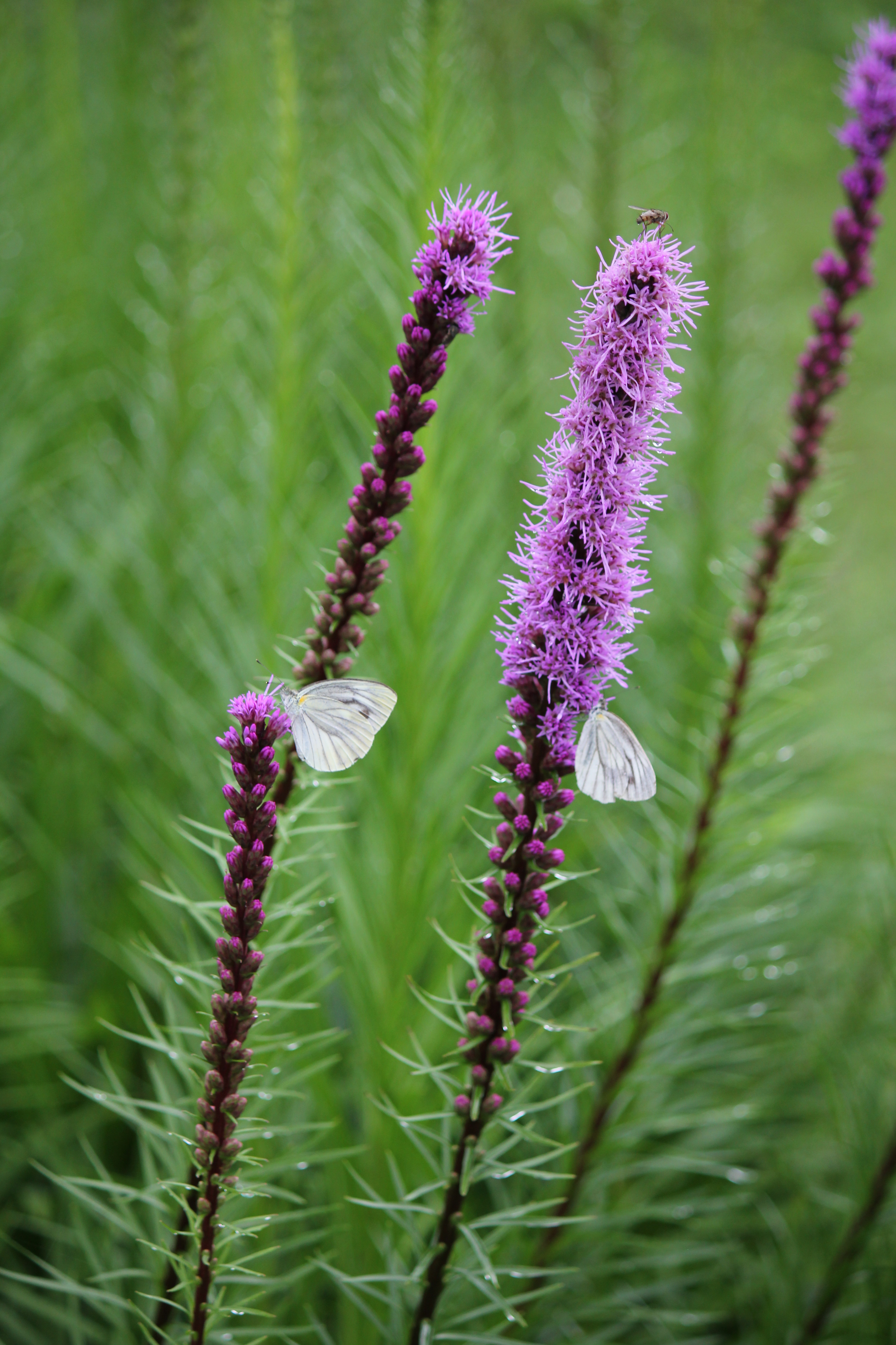 / リアトリスの花が美しい季節となりました。 毎年この花が綺麗だなと感じる日は必ず雨が降っています。 なぜでしょう。不思議なものです。 花がアザミに似ており、葉がユリに似ているところから、 別名:ユリアザミ と呼ばれています。 花が上から下へと咲いて行く、 有限花序(ゆうげんかじょ)と、呼ばれる花の咲き方をし 少し、ユニークな花の姿を楽しむ事ができます。 ↓ ↓ ・